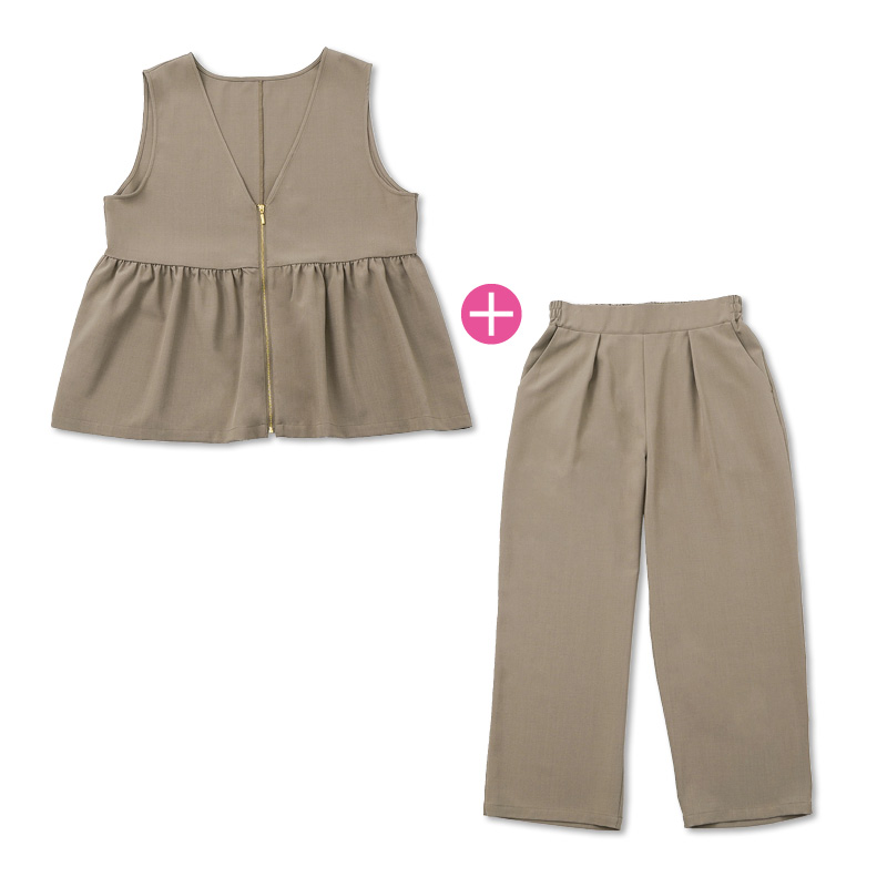 - レディース ペプラムベスト+パンツセット